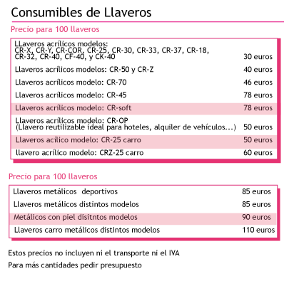 Llaveros consumibles Llaveros consumibles para que los hagas tu Tarifa de precios al final de las imágenes Transporte e IVA no incluidos